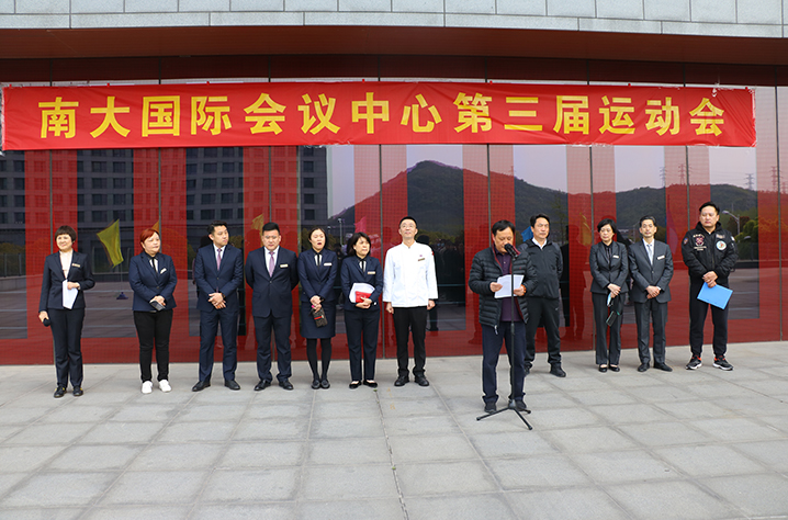 2021年4月7日南大国际会议中心举办了第三届员工运动会,国会中心董事长管连萍、总经理孔凡红携会议中心管理人员出席了开幕式。