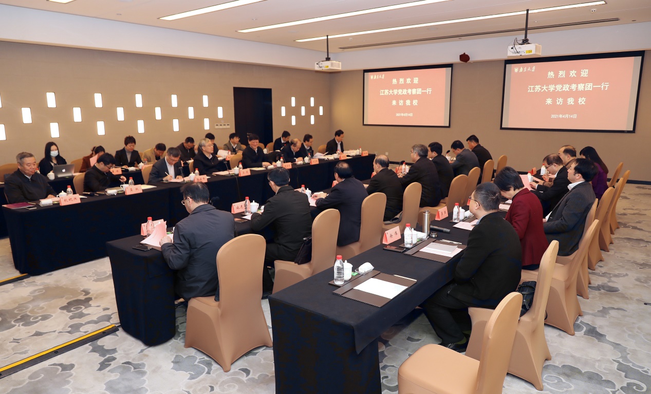4月14日,南京大学党委书记胡金波、校长吕建在仙林校区会见江苏大学党委书记袁寿其、校长颜晓红一行。胡金波主持召开江苏大学党政代表团调研座谈会,双方就高校在高质量党建引领事业高质量发展方面的经验与做法展开深入学习交流。