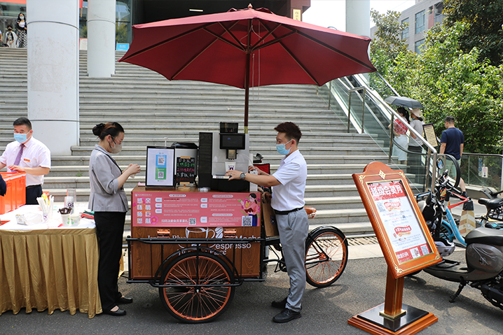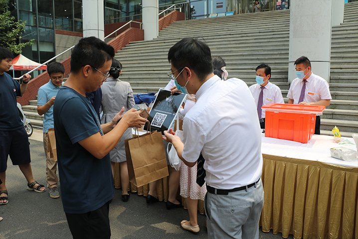 活动现场,中心管理人员热情地向教职工们推介中心的特色服务和产品,通过扫码关注中心的微信公众号,成为会员粉丝,以便教职工随时能接收到会议中心的最新的服务资讯。
