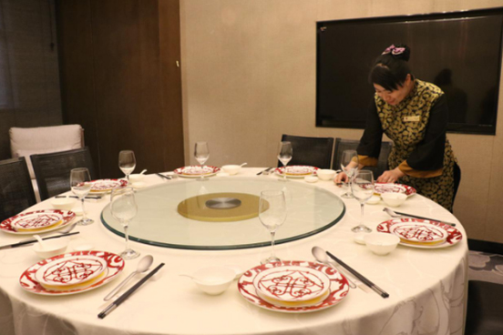 餐饮作为酒店一个至关重要的部门,自开业后一直处于连轴转的状态。服务员正常两点下班经常忙到四点才能结束,晚班服务员正常一点半上班也提前至十二点上班。中餐服务员除正常服务外,每场接待结束后还要清洗每个包间的小餐具。服务员一人负责两个包间2-3桌是常事,当有大宴会厅接待时,一人甚至要负责7-8桌,而这种高压工作状态持续在每天的工作内容中。