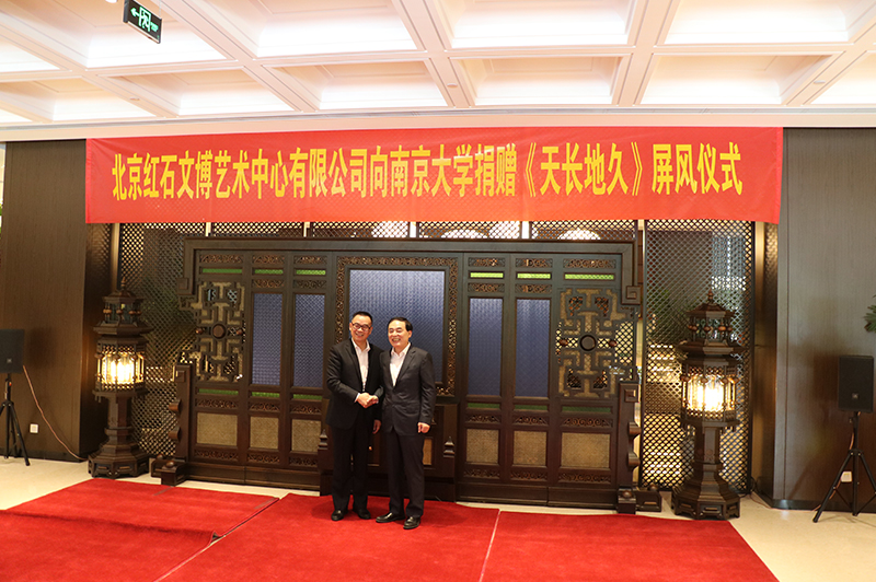 红石文博艺术中心向南京大学捐赠柚木屏风《天长地久》仪式在会议中心举行