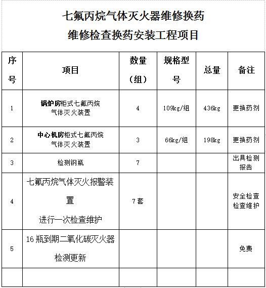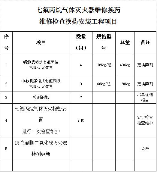 项目名称:七氟丙烷气体灭火器维修换药采购项目