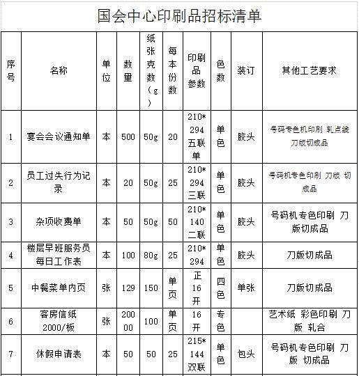 本次招标项目内容:南大国际会议中心所需印刷品类,采购的印刷品品种及要求见附件(非一次性采购)。