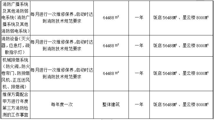 3、须具有从事建筑面积4万平方米以上酒店、宾馆行业消防系统安装、维修保养经验和业绩,经营年限在2年及以上;