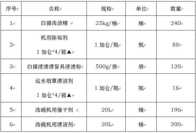 本次招标项目内容:南大国际会议中心所需餐饮洗洁剂类,洗洁剂品种及要求见附件。