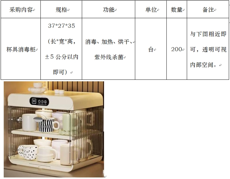 本次招标项目内容:南大国际会议中心所需杯具消毒柜类,消毒柜参数及要求见附件。