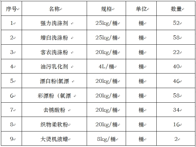 本次招标项目内容:南大国际会议中心所需洗衣厂洗洁剂类,洗洁剂品种及要求见附件。